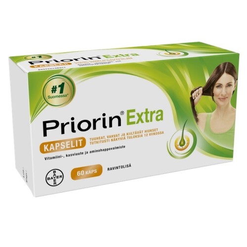 Priorin® Extra -kapselit ravitsevat hiusjuuria sisältäpäin. Priorin® Extra on vitamiini-, kasviuute- ja aminohappovalmiste. Kapselit sisältävät mm. biotiinia, joka edistää hiusten pysymistä normaaleina. Marraskuun tarjouksessa 180 kapselin pakkaus hintaan 76,90 € (norm. 97,77 €)