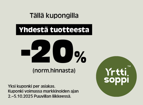 Yrttisoppi on kotimainen laajan valikoiman terveyskauppa, josta löydät kattavan valikoiman mm. ravintolisiä, urheiluravinteita, luonnonkosmetiikkaa, superfoodeja ja homeopaattisia valmisteita. Meiltä järjestetään myös erilaisia terveysmittauspäiviä. Apunasi ovat kokeneet terveystuotealan ja hyvinvoinnin ammattilaiset.