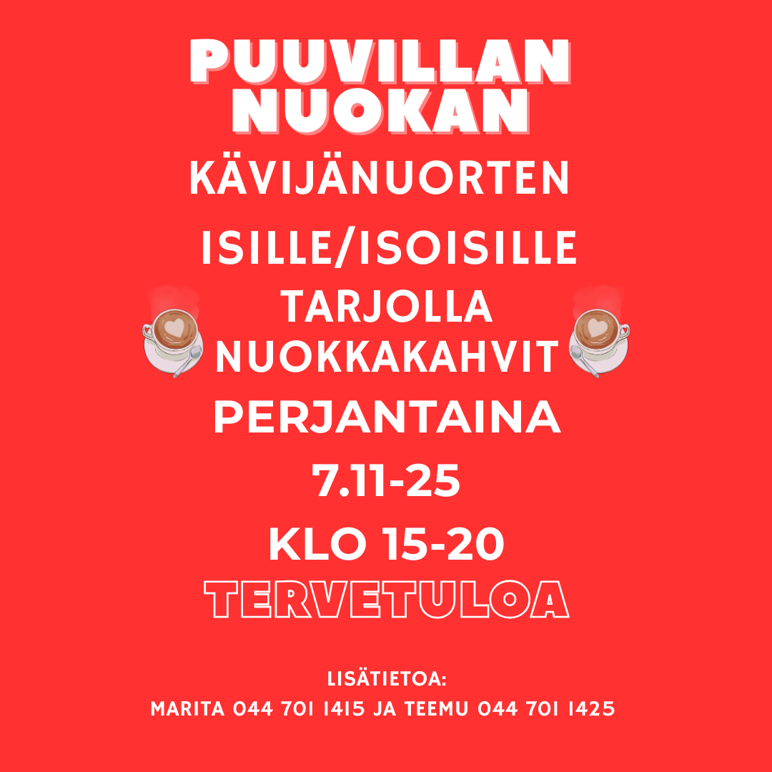 Tervetuloa Puuvillan Nuokan kävijänuorten isät ja isoisät kahvittelemaan nuorisotilallemme perjantaina 7.11.2025 klo 15-20.