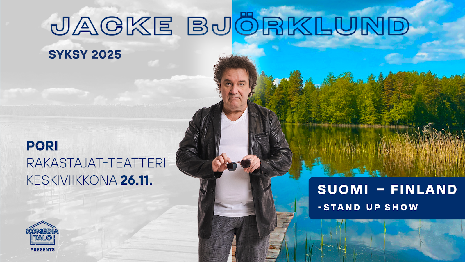 Satiirin kuningas ja sarkasmin keisari Jacke Björklundin uusi show Suomi-Finland kertoo meistä suomalaisista. Ke 26.11. klo 18 | Liput 34,90€ (Ovelta 38€) | K18
