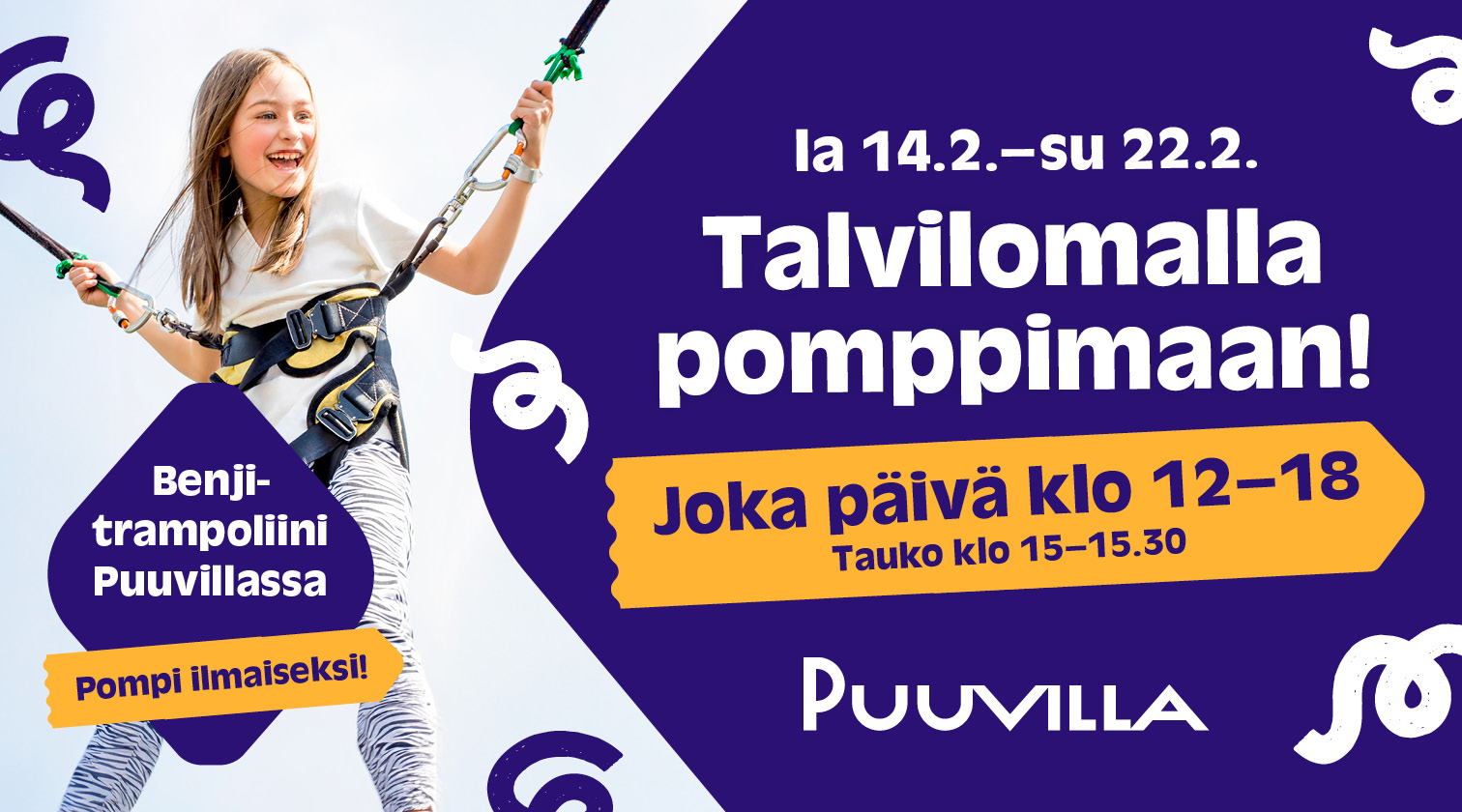 Benjitrampoliini Puuvillassa! Pompi ilmaiseksi vaikka koko viikko. Tramppa auki joka päivä klo 12-18.