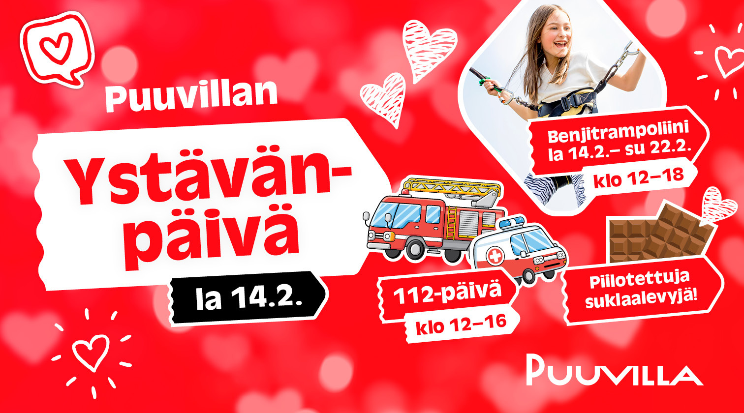 Ilahduta ystävää ja piipahda Puuvillassa. Lauantaina kauppakeskuksessa maksuton benjitramppa ja 112-päivän tapahtumaa. Lisäksi mahtavia tarjouksia, piilotettuja suklaalevyjä ja vaikka mitä muuta mukavaa Puuvilla pullollaan!