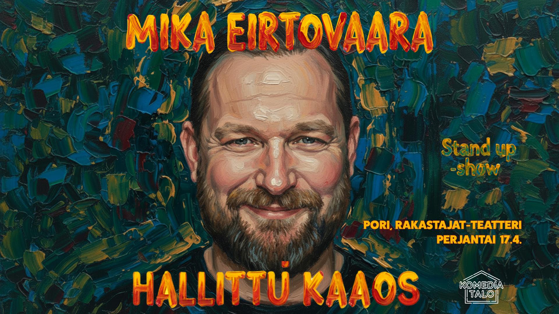 Stand up -lavojen virtuoosi Mika Eirtovaaran show on ainutlaatuinen yhdistelmä uutta ja vanhaa materiaalia – mitään ei ole ennalta päätetty. Pe 17.4. klo 18 | Liput 29,90€ (ovelta 35€) | K18