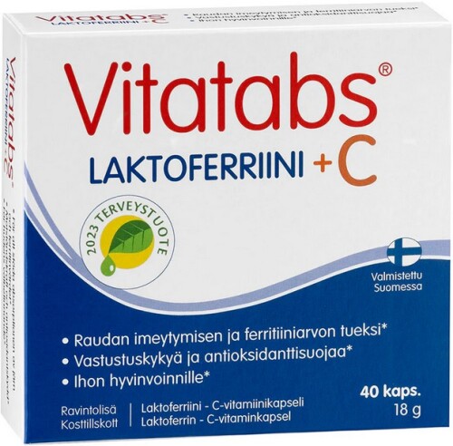 Laktoferriini ferritiiniarvojen tueksi raudan imeytymistä edistämään. Laktoferriini auttaa rautaa jakautumaan elimistössä oikein ja sitä voidaan käyttää myös yhdessä rautavalmisteen kanssa. Se myös ravitsee ihoa sisältä päin ja sopii siten erittäin hyvin ongelmaiholle edistämään ihon hyvinvointia. Laktoferriini on ravitsemuksellinen tuki sekä nuorten että aikuisten finneihin ja muihin ihon epäpuhtauksiin, ihon punoitukseen ja rasvoittumiseen. 40KAPS 18,90€ (norm. 25,90€)