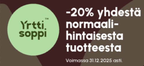 Yhdestä normaalihintaisesta tuotteesta -20%