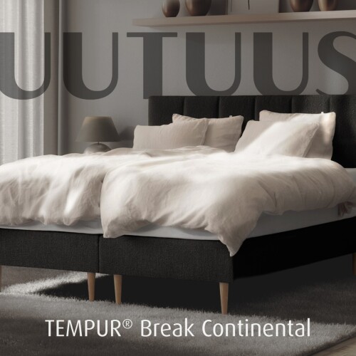 Saatavilla nyt täysin uusi Break Continental -vuodekokonaisuus! Tutustumistarjous -20 % - 160x200cm parivuode 21cm TEMPUR-patjalla alk. 3732,80 € (norm. 4666 €) TEMPUR® Break Continental -sängyssä keho saa levätä ja mieli rauhoittua. Tämä yksinkertaisen kaunis runko on suunniteltu täydentämään TEMPUR®-patjan ainutlaatuisia ominaisuuksia, minkä ansiosta voit nauttia laadukkaasta unesta yö toisensa jälkeen. Tyylikäs muotoilu ja ensiluokkainen laatu. Rungon materiaalit kestävät aikaa ja käyttöä. Uniikki Toscana-kangas. Hienostunut, mutta rento ilme: pinta tuntuu miellyttävältä ja näyttää elävältä