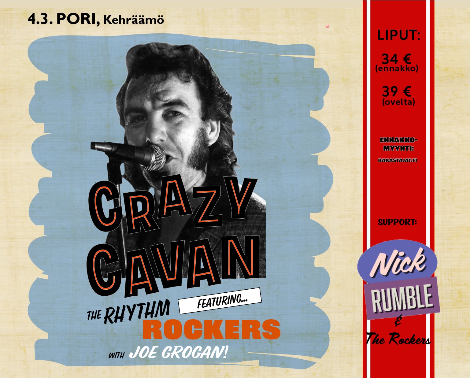Illan lämmittelijänä toimii Nick Rumble & The Rockers.