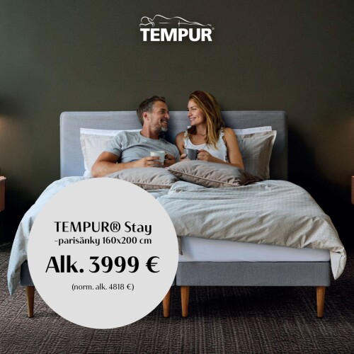TEMPUR Stay -parivuode 160x200 cm alkaen 3999 € (norm. 4666 €) Kaunis ja siro Stay-vuodemallisto muuntuu erinomaisesti moneen eri tyyliin! Uudistuneet väri- ja päätyvaihtoehdot takaavat sen, että saat personoitua omaan makuun sopivan sängyn. Valitse itsellesi yksilöllisesti sopiva patja asiantuntijan avustuksella ja viimeistele makuuhuoneen ulkonäkö vuoteella, joka on kuin tehty sinulle! ???? Saat asiantuntijan avuksesi sängyn valitsemiseen TEMPUR Brand Store -myymälässä. Kun varaat ajan osoitteesta tempurbrandstore.fi/varaa-aika/, saat lisäksi lahjan kartoituksen yhteydessä! ????