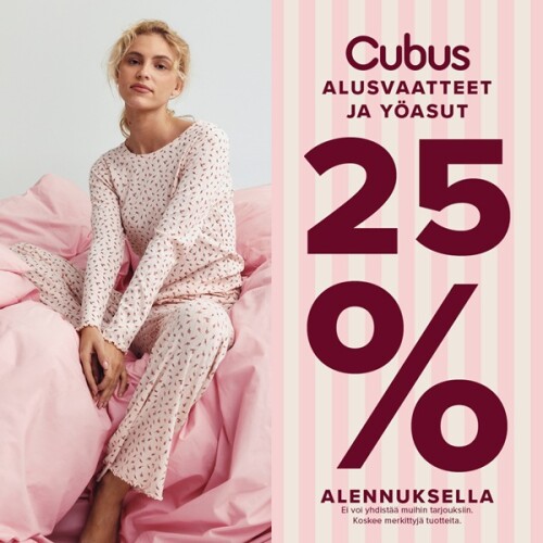 Ystävänpäivä lähestyy! Nyt Cubuksella kaikki alusvaatteet ja yöasut 25% alennuksella.