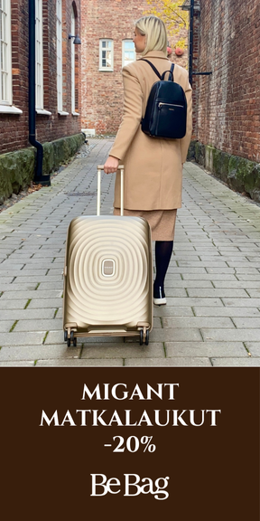 Migant-matkalaukut -20% normaalihinnasta. Saatavilla useita eri malleja, kokoja ja värejä.