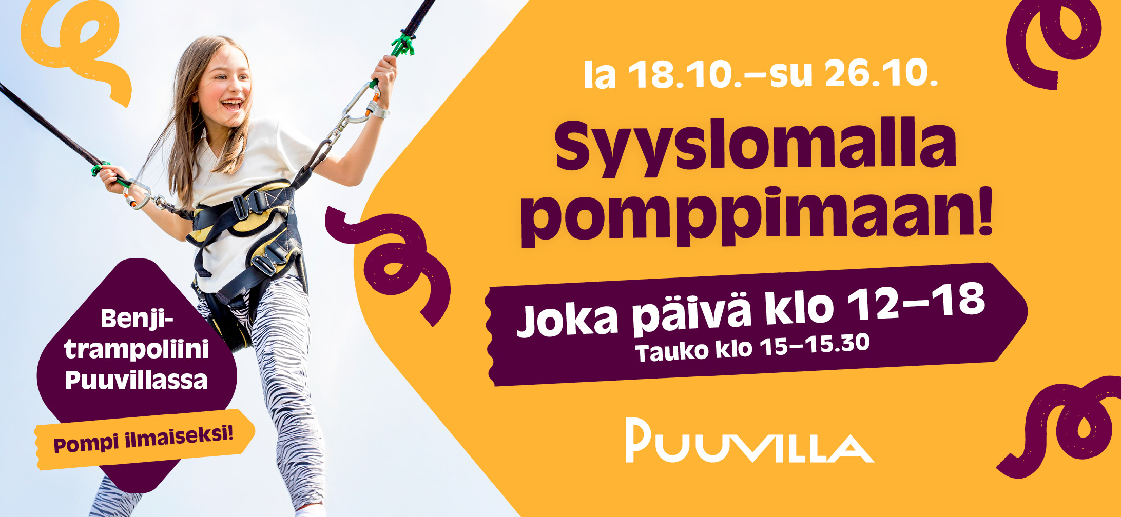 Benjitrampoliini Puuvillassa! Pompi ilmaiseksi vaikka koko viikko. Tramppa auki joka päivä klo 12-18.